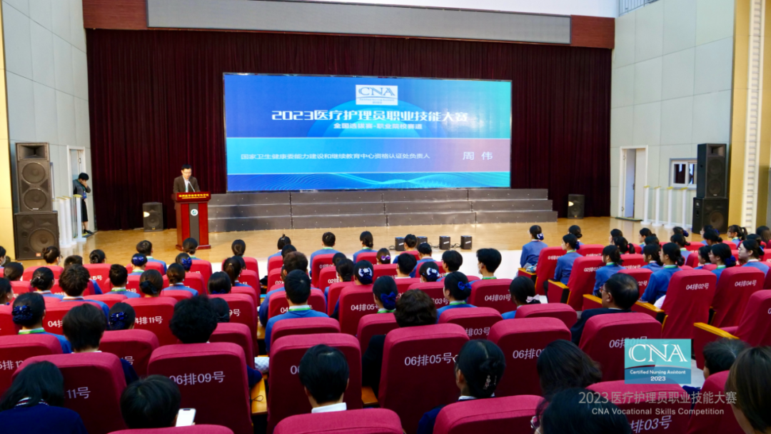沧州市卫生健康委员会副主任胡尚友在致辞中表示,首届医疗护理员职业技能大赛是各职业院校学生展示医疗护理员技能风采的舞台,有利于职业院校深化“三教”改革,推进“岗课赛证”综合育人,提升社会影响度和美誉度。他对大赛承办校、参赛院校以及选手们提出希望和要求,希望通过多方合力,将本次大赛办出特色和水平,树立医疗护理服务标杆,推动医学职业教育改革,为职业教育高质量发展和健康中国建设发挥新作用、做出新贡献。